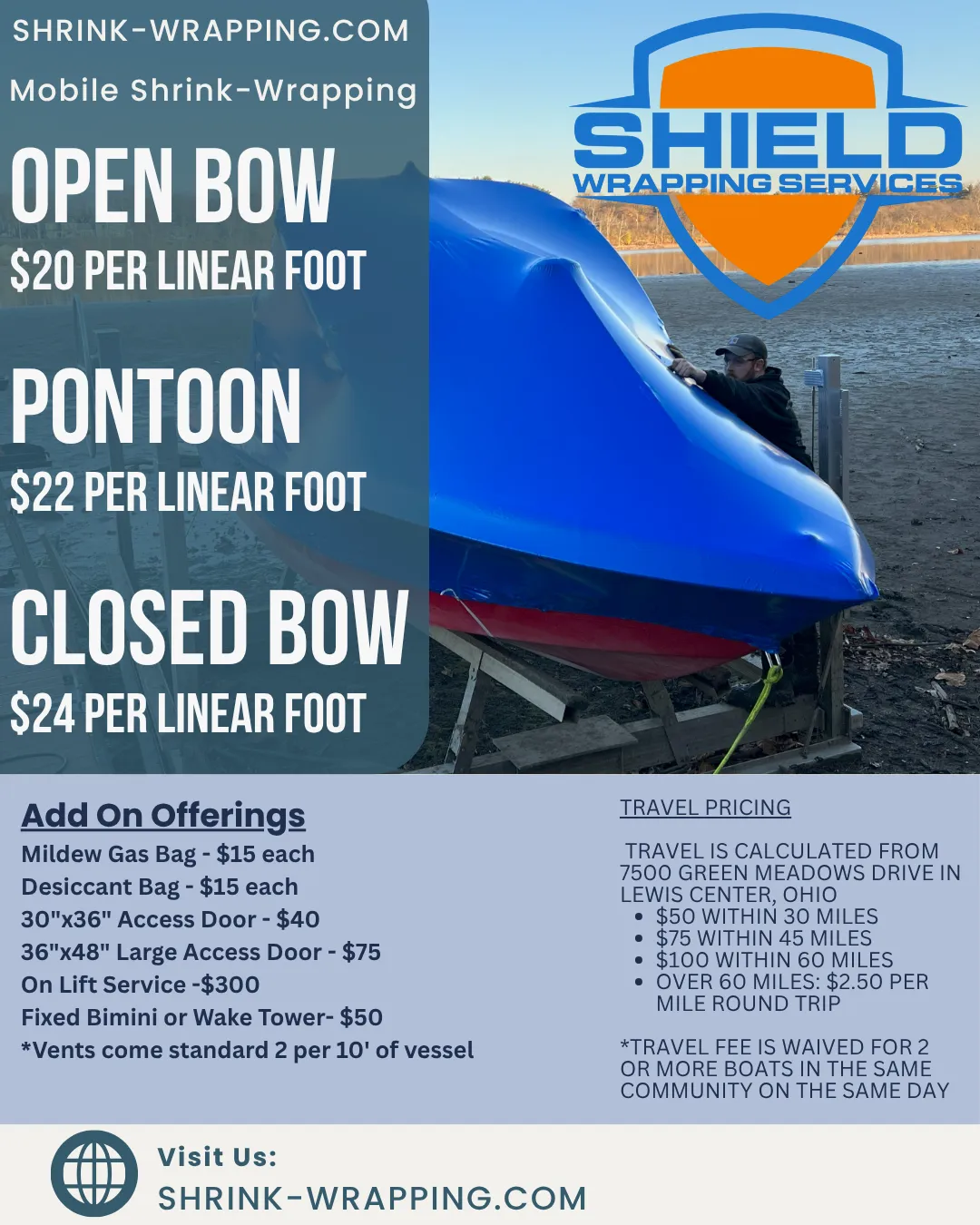 At Shield Wrapping Services, we’ve been around boats our whole lives. We know the difference between a quick wrap and one that actually holds up. We use marine-grade film, tight seams, and proper ventilation to help prevent mold, mildew, and moisture damage while your boat is covered.